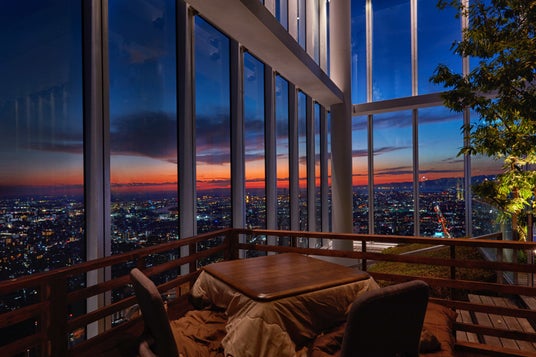 開業10周年を迎えたあべのハルカスの展望台「ハルカス300」では、 2024年10月28日(月)から2025年3月31日(月)まで、58階「天空庭園」にて、温かいこたつに入りながら絶景とおでん・お鍋