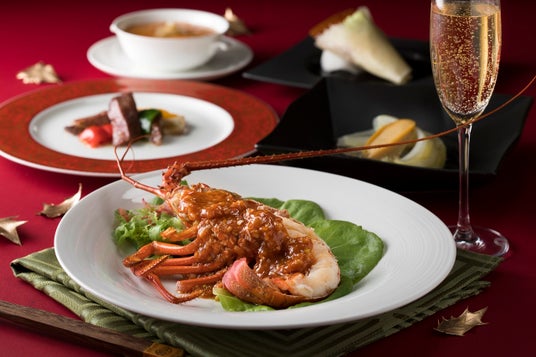 高温で蒸すことで旨味をとじ込めた伊勢海老のチリソースなど、四川の味をクリスマスらしくアレンジしました。