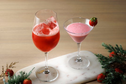 つぶしたいちごの食感と紅茶や生姜の香りが溶け合い心なごむ一杯と、いちごミルクをイメージしたどこか懐かしいカクテルをどうぞ。