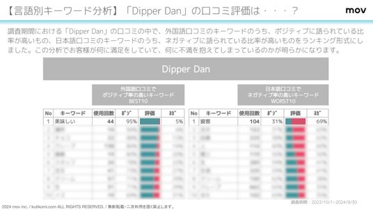 ■【言語別キーワード分析】「Dipper Dan」の口コミ評価は・・・?