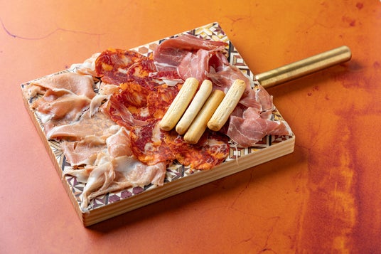 【イベリコ豚の生ハム盛り合わせ M:1848円 L:2750円]】ベルケル社製のこだわりの生ハムスライサーでスライス