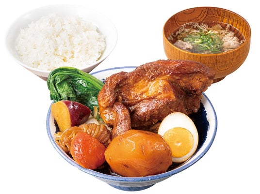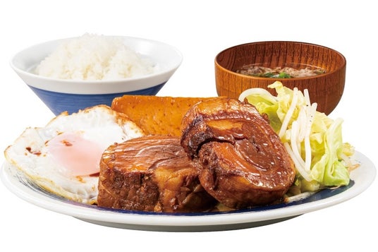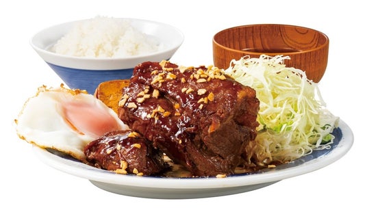 その他、期間限定で販売した「肉塊トンテキ定食」が、グランドメニューに仲間入りすることとなりました。200g以上ある豚の塊肉を、箸で簡単にほぐれる柔らかさになるまで割り下でじっくり煮込み、ニンニク醤油で香ばしく焼き上げガーリックチップで仕上げています。ひと口頬張れば、思わず白米に箸が伸びるトンテキをメインに、煮豆腐と目玉焼きを添えた食べ応えのある定食です。