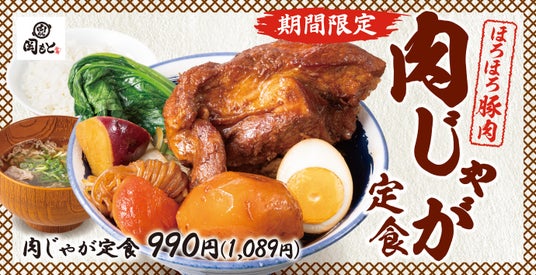 こだわりの割り下に秘伝のかえしで丁寧に、じっくり柔らかく煮込まれた肉と豆腐が主役の肉めし専門店「肉めし岡もと」にて、期間限定メニュー「肉じゃが定食」を2024年10月16日(水)より販売開始いたします。