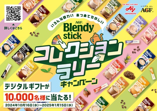 味の素AGF株式会社(代表取締役社長:島本 憲仁 以下、味の素AGF)は、フレーバーバリエーションの豊富な《「ブレンディ(R)」スティック》シリーズにおいて、《いろんな味わい あつめてたのしい「ブレンディ(R)」スティック コレクションラリーキャンペーン》を2024年10月16日(水)から2025年1月15日(水)まで実施します。