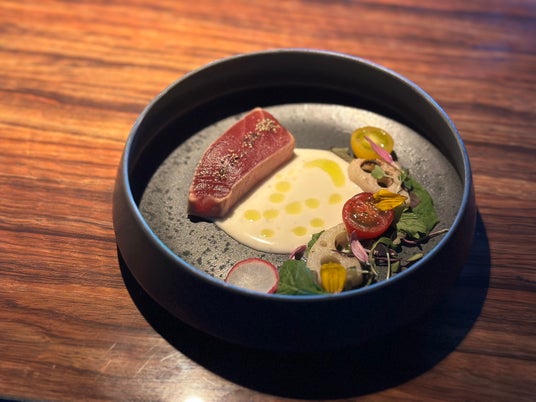 マグロの瞬間ロースト 冬の根菜とハーブサラダ