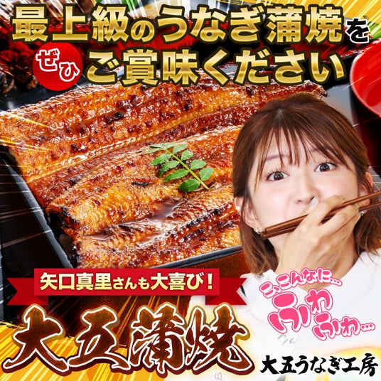 放送を記念して大五うなぎ工房本店では、期間限定セールを開催中です。「大五蒲焼」を期間限定【20%オフ】でお求め頂けます。ぜひこの機会に、アンタッチャブル柴田さん、矢口真里さんが大絶賛した蒲焼をぜひご賞味ください!