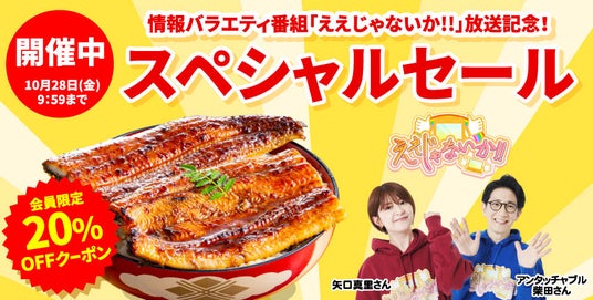 【大五蒲焼20%オフ!】情報バラエティ番組「ええじゃないか!!」放送記念セール開催中!10月28日(月)AM9:59まで
