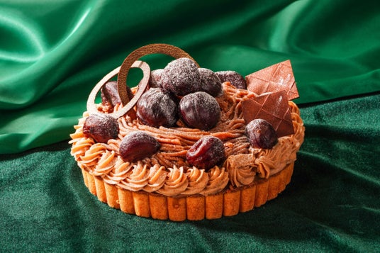 マロンムースをタルト台にのせ、二色の洋栗を使用したクリームでモンブランに仕上げました。栗の濃厚な風味を堪能できるケーキです。