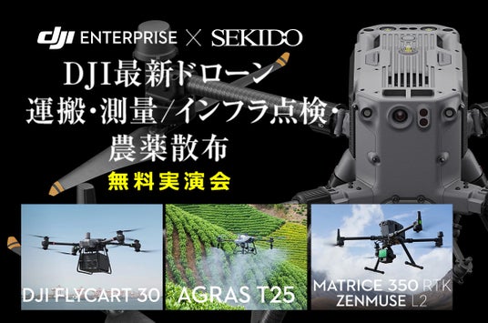 DJI(ディージェイアイ)正規販売代理店としてドローンビジネスの最先端を支える株式会社セキド(本社:東京都港区、代表取締役:大下貴之)ではセキド福岡(運営:株式会社レイメイセキド)、セキド熊本県央(運営:株式会社レイメイ藤井)と共同で、11月6日(水)~8日(金)に熊本県合志市・福岡県田川市・大分県大分市の3会場にて、運搬や測量、インフラ点検、農薬散布業務でのドローン活用を実演を交えてご紹介する「DJI最新ドローン 運搬・測量/インフラ点検・農薬散布 実演会」を開催いたします。