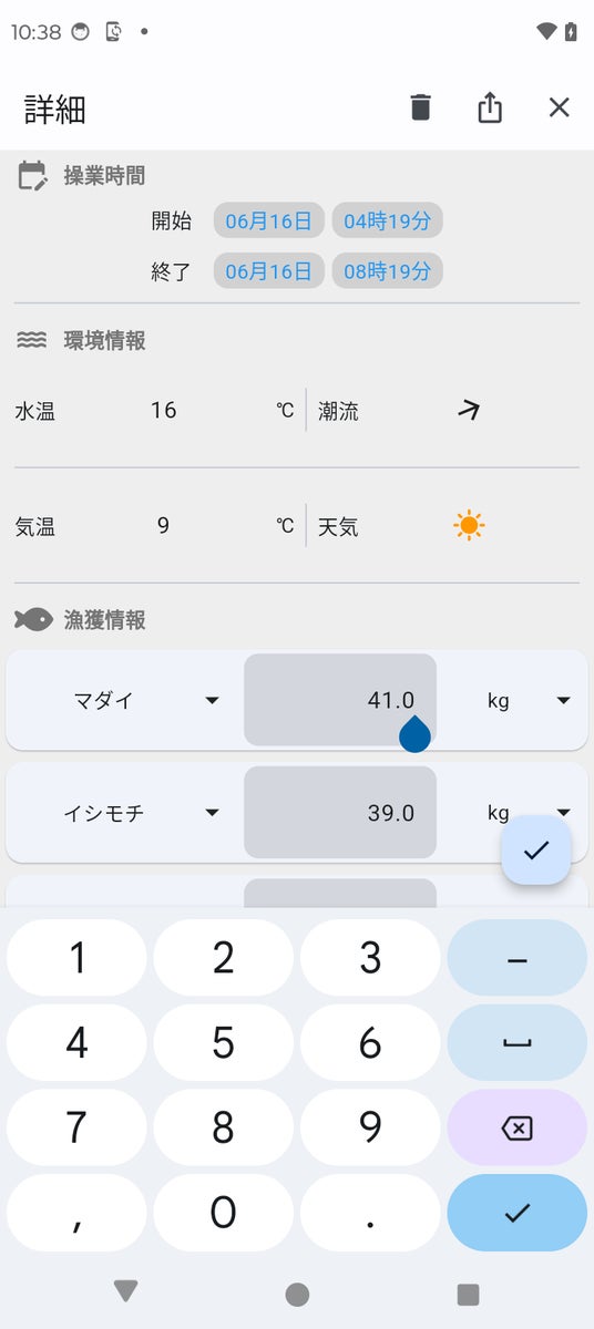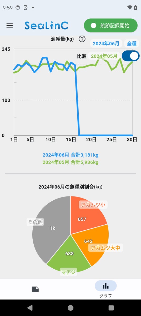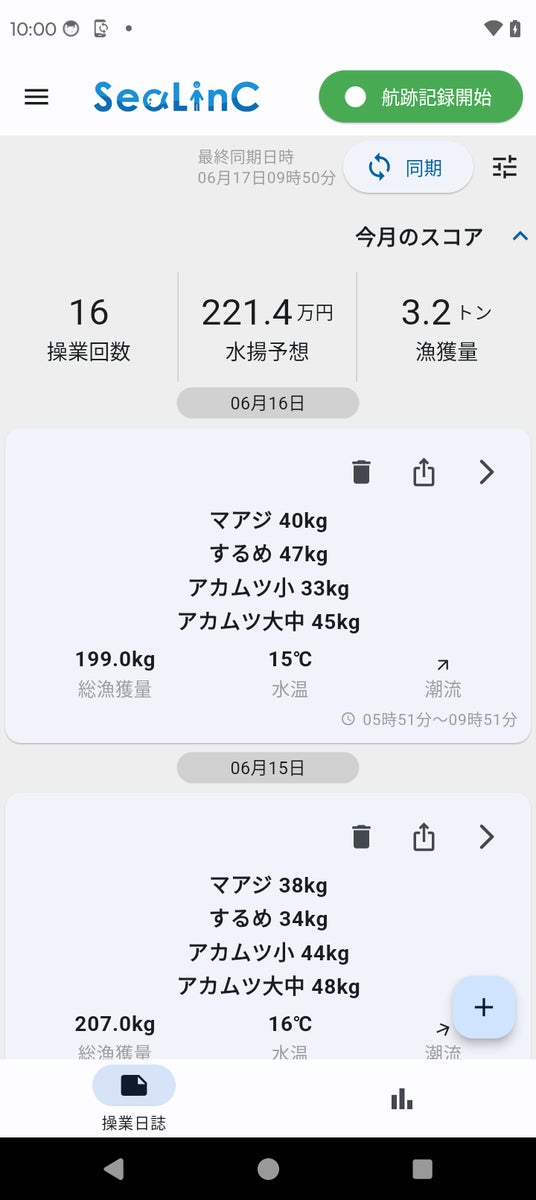 ●操業日誌機能: いつ、どこで、何が獲れたか?航跡や環境情報と共に記録し、シンプルに効率的な振り返りを可能にします。