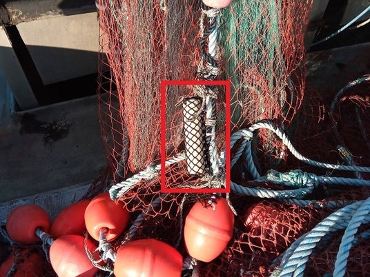 網などの漁具に取り付けて水温・深度を観測する当社のセンサー設置事例 ※これまでの取り組み