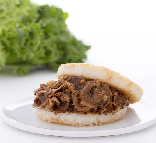 たっぷりの牛バラ肉をモスオリジナルの焼肉ダレで仕上げたライスバーガーです。醤油ベースのタレには玉ねぎ、にんにく、人参のペースト、生姜のペーストを絶妙にブレンド。「いつもの味」はそのままに、より深い味わいを引き出しました。甘みと旨みのバランスにこだわり、牛肉とご飯の相性を追求しました。ご自宅でレタスなどの葉野菜をプラスするアレンジがおすすめです。