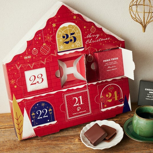 バニラビーンズの看板商品「ショーコラ」と「パリトロ」が詰め合わさった7日間用アドベントカレンダー。“ピスタチオ”や“ストロベリーチーズケーキ”などクリスマス限定のフレーバーもお楽しみいただけます。