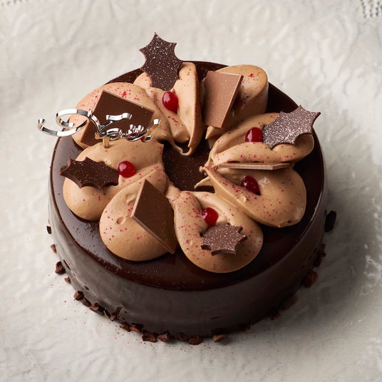 9層からなる当店人気No.1のケーキを今年も特別なクリスマスデザインに仕上げました。濃厚ムースの口どけや、クッキー生地のサクサク食感、カカオニブを使った層などで構成し、カカオからこだわるチョコレート専門店の濃厚な味わいを存分にお楽しみいただけるVANILLABEANSの自信作です。
