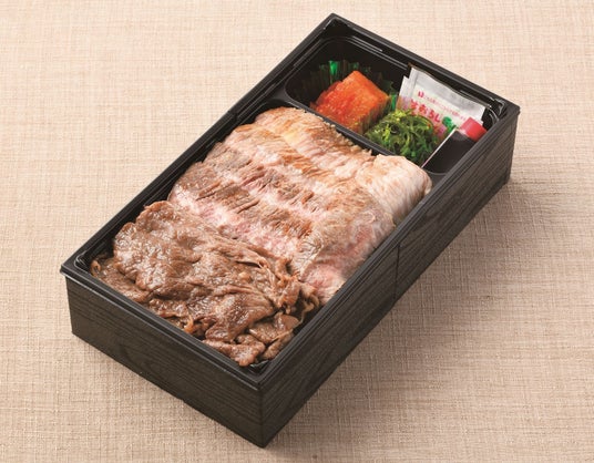 精肉店として創業した同店が厳選する、赤身肉の旨みが特徴の岩手短角牛を使用。甘辛く煮込んだやわらか煮、焼肉、ステーキと、3種の味わいを一度に楽しめる弁当です。