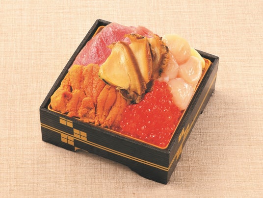 石巻市からフェリーで1時間、世界有数の漁場としても知られる網地島の料理店が初登場。店主が厳選した三陸産のマグロ・ホタテ・アワビ・イクラと、上質なウニを贅沢に盛りつけた海鮮弁当です。