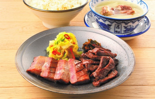 牛たん焼きを仙台名物として全国に広める役割を果たしたといわれる大河原要氏が、1975年に創業した老舗牛たん焼き専門店。熟練した職人がすべて手作業で皮むきから味付けまで行う、こだわりの厚切り牛たんと定番の牛たんをミックスした今展限定メニューを提供します。