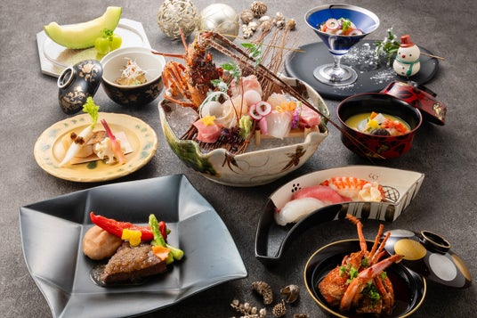また、日本料理「大阪 浮橋」では完全個室で味わう和食のクリスマス会席として、「黒毛和牛ひれ肉網焼き」や「蝦夷鮑福良煮」、「握り寿司」など特別な日にふさわしい華やかなお料理を揃えます。優雅で重厚感のあるプライベート空間で、大切な方たちとゆったりとお食事をご堪能ください。