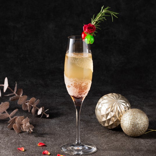 薔薇、エルダーフラワー、レモン、シャンパンを使用したクリスマスシーズンにぴったりのオリジナルカクテルです。