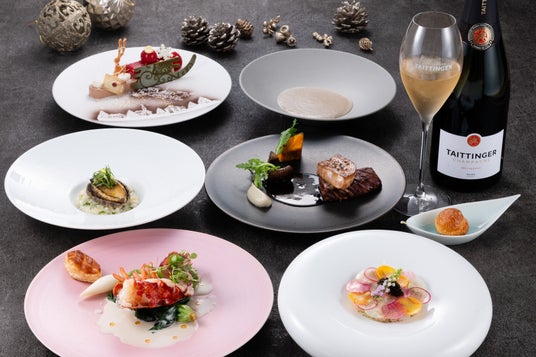 その他、鉄板焼「季流」では厳選素材をシェフが目の前で焼き上げる豪華な鉄板焼コースを、スカイダイニング「アブ」では、カジュアルな雰囲気の中で楽しめるクリスマスコースをご用意します。ホテルのメインバー「サンドバンク」では、シャンパンに薔薇をあしらい華やかに仕上げたオリジナルカクテルをご提供します。