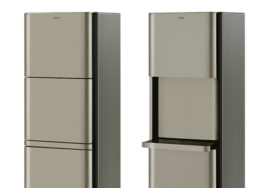 本製品は、機能性と美しさを両立させたインテリアに自然に溶け込むウォーターサーバーを目指し、デザインオフィス「nendo」の協力のもと生まれました。従来品は見た目の「家電感」が強く生活空間に溶け込みにくいものが多いですが、本製品では正面の出水口周りが未使用時はパネルで隠れること、側面・天面にも余計な凹凸等がないことから全体的にフラットなデザインとなっています。一見してウォーターサーバーだと分からない状態を保つことで生活空間での存在感の最小化を実現しました。