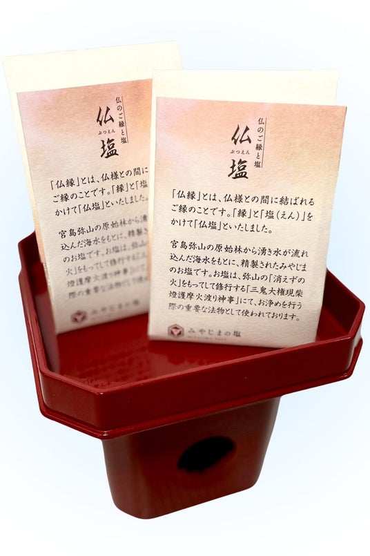 大聖院様とみやじまの塩との間に結ばれたご縁として『仏塩』と命名して頂きました。