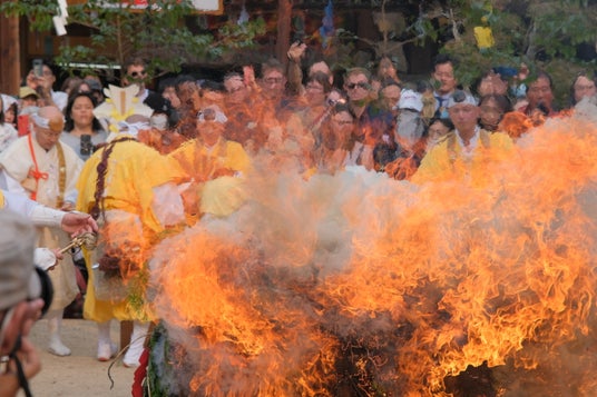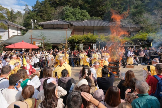 そして、火の残る檜の青葉の上を、大導師・僧侶・山伏・信者・参拝者の順で、それぞれの願望成就を唱えながら素足で渡ります。
