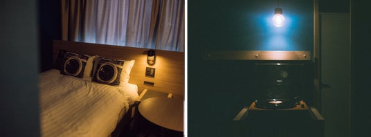 お部屋にはレコードプレーヤーや他の参加者の感想を覗き見できるゲストノートも。ここからはあなただけの夜を楽しんで。