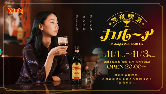 それに伴い、2024年11月1日(金)~11月3日(日)20:00~23:00に、恵比寿にある老舗純喫茶「喫茶銀座」の閉店後 「深夜喫茶 カルーア」 の世界観を体験いただけるリアルイベントを期間限定でオープンします。