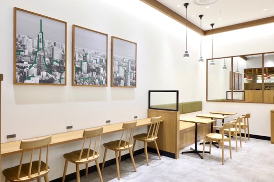 店内には18席のイートインスペースを用意しました。テーブルや椅子は全て国産木材を使用しており、木の温もりが感じられる落ち着く空間で、ゆっくりと過ごしていただけます。また、店舗の前にある共有イートインスペースでもサラダを召し上がっていただけます。