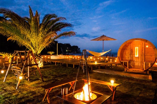 日本初!雲海広がる ビーチサイドグランピングリゾー天然温泉貸切風呂& サウナ&ジャグジー付き