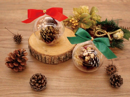 森で採れた素材で作るクリスマスオーナメントのワークショップ。