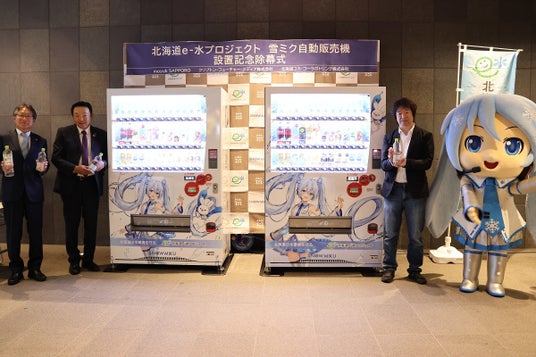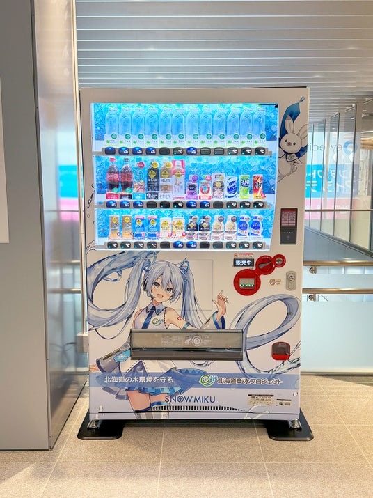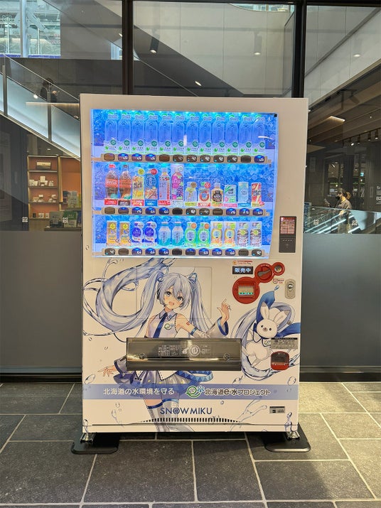クリプトン・フューチャー・メディア株式会社(本社:北海道札幌市、代表取締役:伊藤博之)は、『雪ミク(初音ミク)』のイラストでラッピングされた「北海道e-水プロジェクト 雪ミク自動販売機」(以下、雪ミク自販機)が、札幌市中央区にある複合施設「moyuk SAPPORO(モユクサッポロ)」内に設置されたことをお知らせいたします。本日2024年10月17日(木)より、同施設の2階と地下1階に、異なるデザインものが1台ずつ設置となっております。『雪ミク』は当社が展開する北海道を応援するキャラクターで、北海道の水環境を守る「北海道e-水プロジェクト」のアンバサダーを務めております。「雪ミク自販機」で販売されている「い・ろ・は・す天然水540PET」を購入いただくと、同プロジェクトへの寄付に繋がり、水環境を守る活動の一助となります。