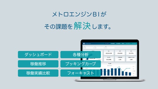 過去のブッキングカーブや現在の予約状況、今後の売れ行きなど、宿泊予約に関するあらゆるデータを直観的なUIで提示し、経営状況のリアルタイム把握と多角的な分析を可能にするサービスです。販売戦略の強化をはじめとし、スピーディーかつ正確な経営判断をサポートします。
