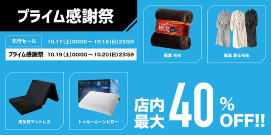 株式会社新陽トレーディング(東京都中央区)は、同社が提供する寝具ブランド「tobest」は、2024年10月19日(土)0:00から10月20日(日)23:59まで、Amazonプライム会員限定の「Amazon プライム感謝祭」にて、衝撃の最大40%のビッグセールを開催いたします。さらに、2024年10月17日(木)0:00から10月18日(金)23:59まで事前セールも開催!
