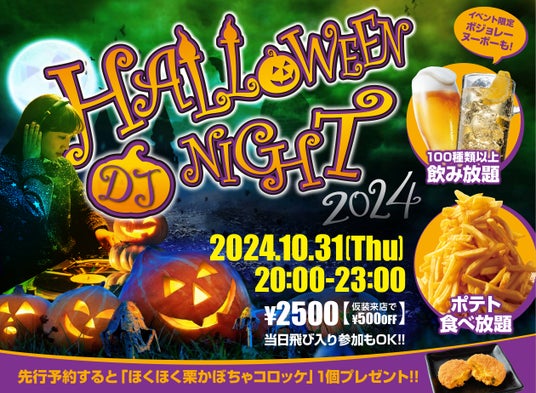 内容:DJパフォーマンス、アルコール・ソフトドリンク飲み放題(ボジョレー・ヌーボー含む)、フライドポテト食べ放題