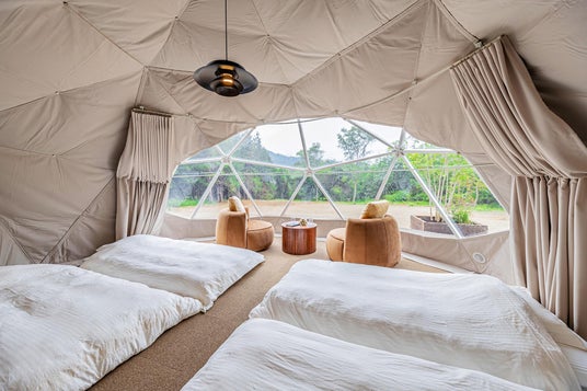 ワンちゃんと一緒に過ごせるお部屋を、1日1組限定でご用意しております。お部屋は、半球体のドーム型テント。犬種や頭数に制限はなく、室内ではワンちゃんもノーリードで自由にお過ごしいただけます。