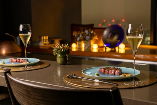 新宿副都心の都会の夜景を望むカウンター席でお楽しみいただくのは、素材を熟知したシェフが選び抜いた上質な和牛、冬に旬を迎える海の幸や野菜など季節の味覚を贅沢に味わえるディナー限定の特別コース。シェフこだわりの和牛は「石垣島きたうち牧場 プレミアムビーフ」。脂の融点が低いためすっきりした脂の滑らかさ、赤みの深い旨みが広がります。