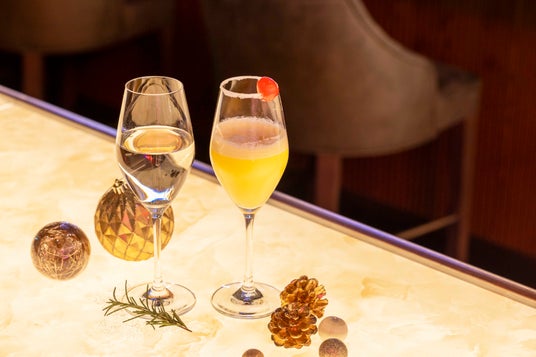 シャンパン「ローラン・ペリエ」をベースにした、おふたりでお楽しみいただくペアリングカクテルもご用意いたします。女性をイメージした「キャンドルライト」はシュトーレンのレシピにインスパイアされたカクテル。シャンパンにヨーグルトリキュール、オレンジジュース、レーズン、アーモンドなどをミックスし、シュトーレンのような味わいから始まり、シャンパンのすっきりした味わいで終わります。男性をイメージした「ロワイヤル」はシャンパンにマスカット、エルダーフラワーのリキュールを加え、花の香りが際立ちます。ペアでも、単品でもお楽しみいただけます。