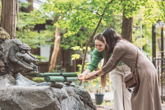 手水を使う様子