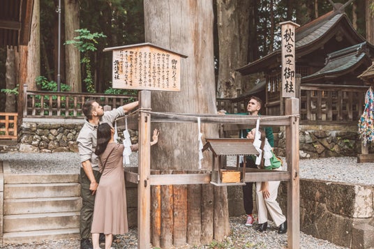 外国人観光客が諏訪大社を参拝する様子