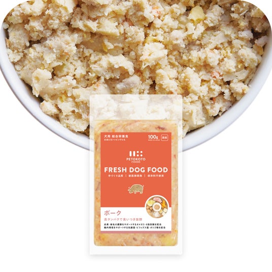 ペトコトフーズは、「エサからごはんへ」をコンセプトに、国産食材を使用し低温スチーム加熱・急速冷凍製法で手作りごはんのように美味しいながらも、全犬種全年齢で1日に必要な栄養がとれる総合栄養食のペットフードです。