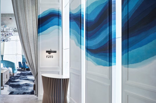 ファロでは、日本全国をめぐり生産者とのつながりを深めています。食器やカトラリー、テーブルアクセサリーにいたるまで、日本のすばらしい伝統文化を守りたいという想いから、新潟の組子、多治見や有田の器、今治の織物、江戸切子のグラスなど、”日本の匠の技”にこだわり、とり揃えています。空間は和と洋の融合をイメージしエレガントでスタイリッシュに演出。大地~海~空という自然を感じる色彩のグラデーションを基調とした店内は昼と夜で、それぞれ趣のある表情を醸し出します。驚きと楽しさに満ちたガストロノミーを美しい地中海を想起させるような空間でお楽しみください。