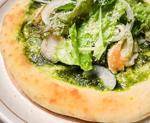 北海の荒波で育つ、身のひきしまった味の良い稚貝ホタテを新鮮なうちにスチームボイルし風味を閉じ込めました。ギュッと詰まったホタテの旨味とバジルの香りが贅沢なピザです。