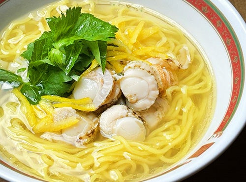 ホタテの旨味が詰まったあっさり塩ベースのスープと特製のつるつる生麺、柚子の香りがアクセント。〆の一杯にもぴったりです。