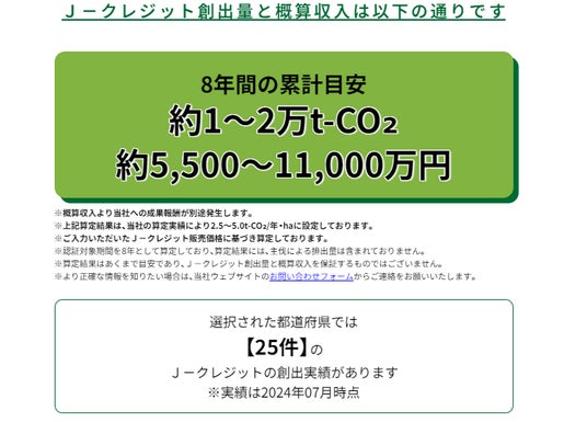 株式会社ステラーグリーン(本社:東京都中央区、代表取締役社長 兼 CEO:中村 彰徳)は、森林の所在地域や面積などに関する情報を入力すると、概算のカーボンクレジットの創出量や収入が分かる「J-クレジット概算収入簡易算定ツール」を2024年10月18日(金)にリリースいたしました。