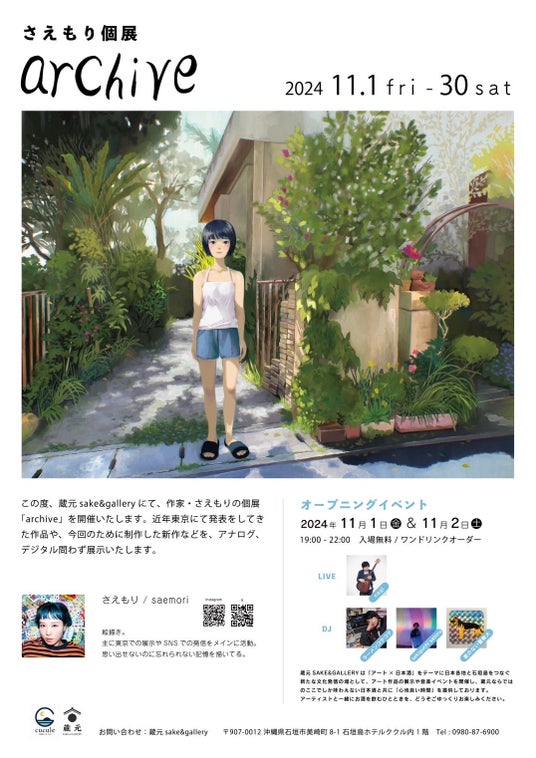 沖縄県石垣市にある蔵元 SAKE&GALLERY は、2024年11月1日(金)~11月30日(土)までの期間、さえもり個展「archive」を開催します。