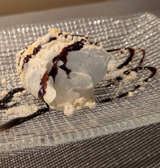 ドルチェ:徳島の特産卵「あわそだち」と「阿波晩茶」「阿波和三盆」を使用したティラミス。仕上げの「和三盆糖蜜」でお楽しみください