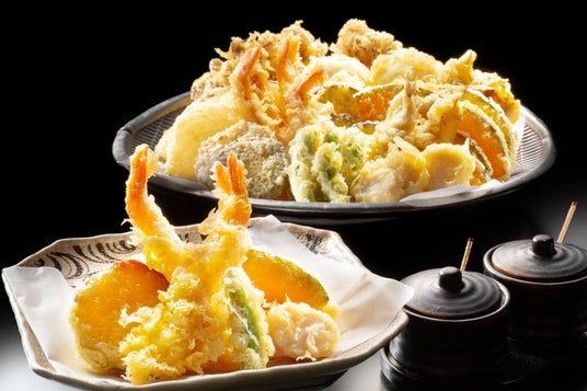 ライブキッチンより届く、揚げたての天麩羅はお好きなだけどうぞ。ムーンロードや朝日に輝く海を眺めながら、夕食や朝食をご賞味いただけます。