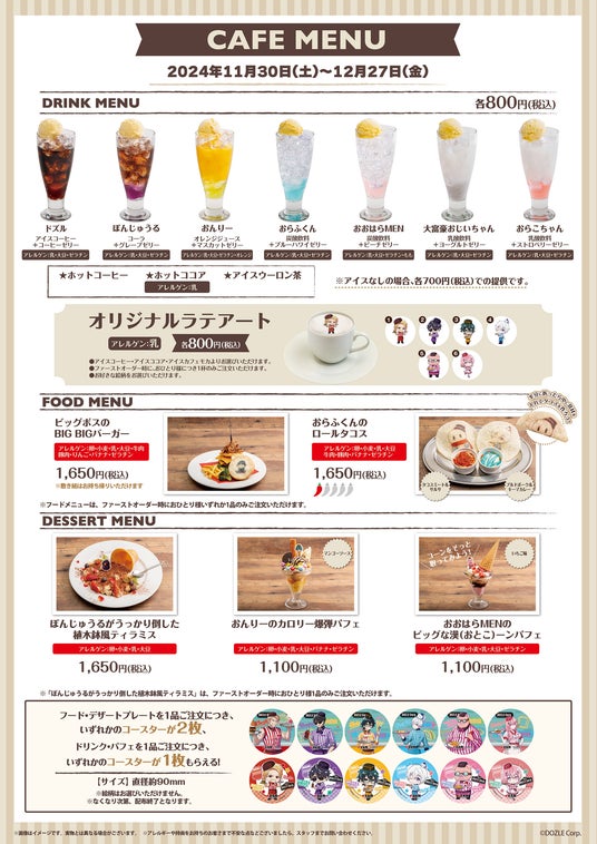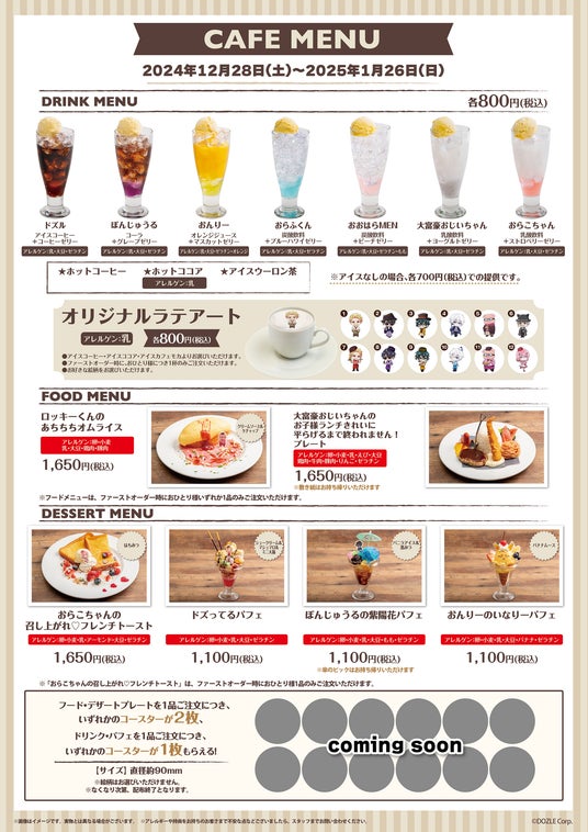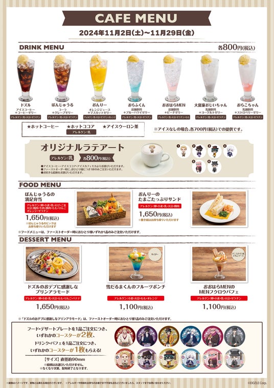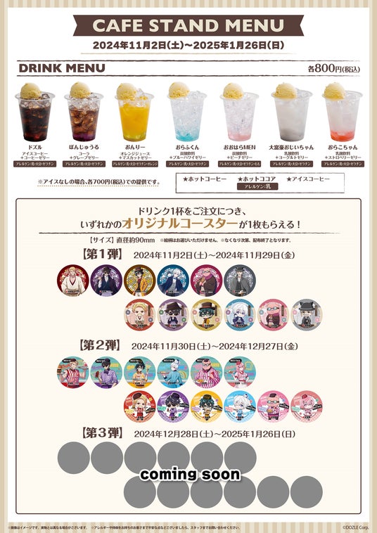 ※期間によってメニュー内容・コースターデザインの変更を予定しています。